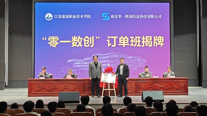 11月11日,学校与南京零一数创信息科技有限公司共建“零一数创”订单班正式开班。校党委委员、副校长刘海波出席开班典礼并讲话,南京零一数创信息科技有限公司总经理王龙飞出席并致辞。教务处、科技开发与对外合作处负责人,建筑建造学院班子成员、全体教师、2024级和2025级全体同学参加。