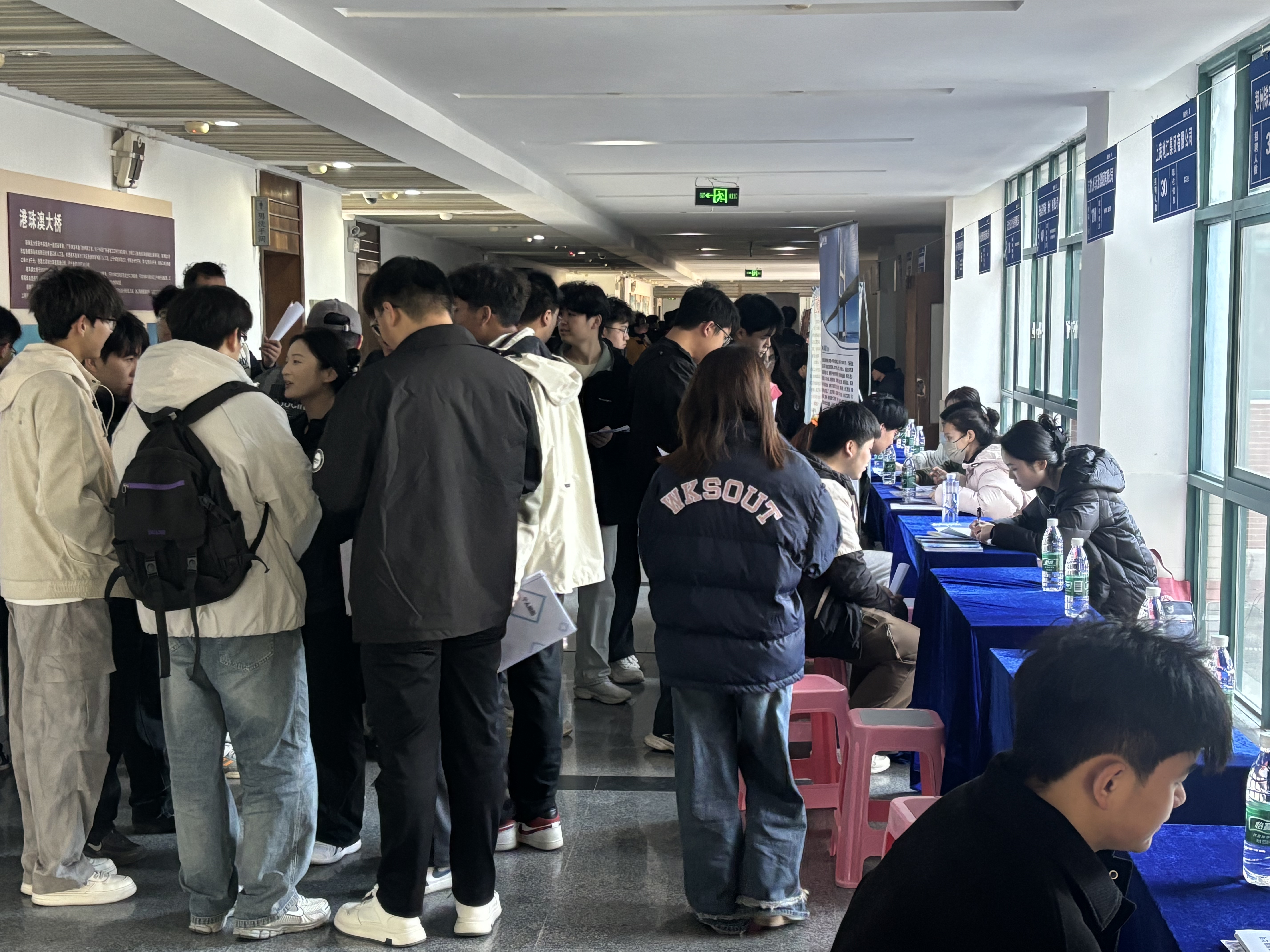 招聘会现场气氛热烈,毕业生们积极涌入会场,主动与用人单位沟通交流,深入了解岗位需求与职业发展前景。本次活动为2026届毕业生,尤其是目前尚未落实就业去向的同学,搭建了宝贵的求职平台。此外,部分2024级学生也来到现场观摩学习,提前感受求职氛围,积极寻求实习机会。