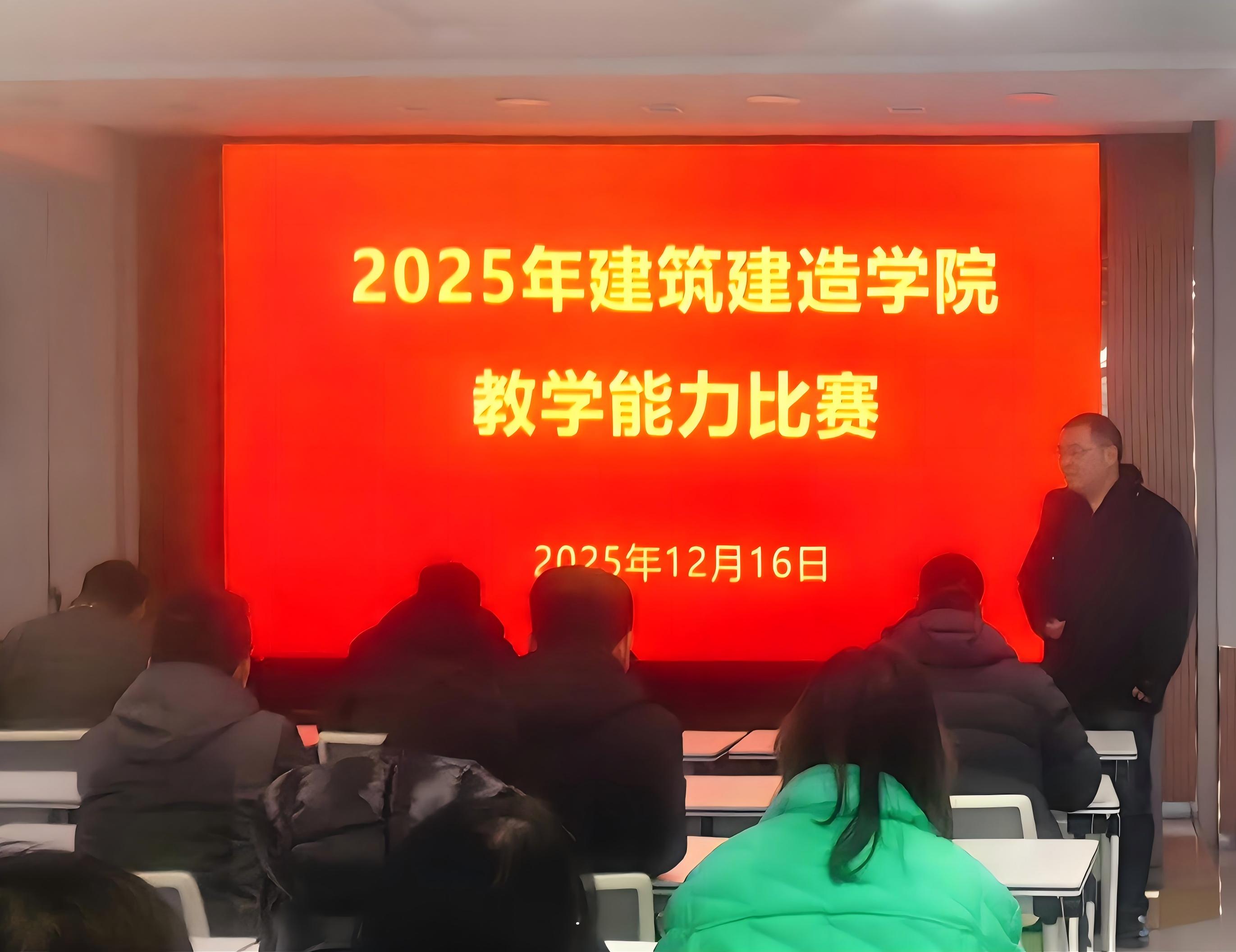 为进一步提高我院人才培养工作水平,推进课堂教学质量提升,提高教师教学设计与课堂实施能力,12月16日建筑建造学院在利亚楼报告厅成功举办2025年学院教学能力比赛。本次比赛特邀教务处处长袁涛、校学术委员会主任徐志鹏、城市轨道交通工程技术专业主任崔蓬勃担任评委。
