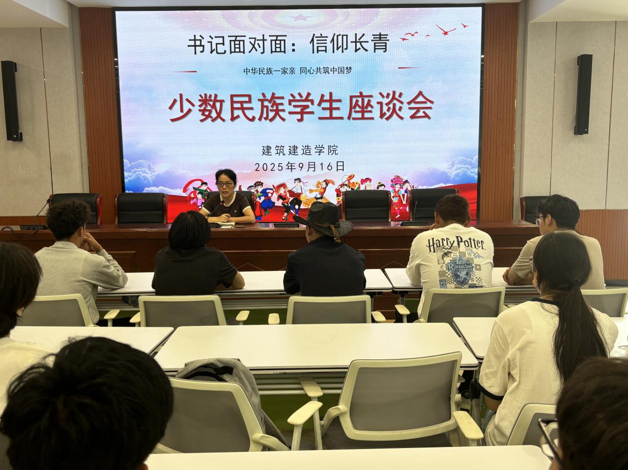 为深入贯彻落实中央民族工作会议精神,铸牢中华民族共同体意识,切实关心2025级少数民族新生入学适应情况,帮助少数民族新生更好地融入大学生活,9月16日上午,建筑建造学院在利亚楼报告厅举办2025级少数民族学生座谈会。党总支副书记盛芳、专职辅导员宋磊和2025级全体少数民族新生共同参与。